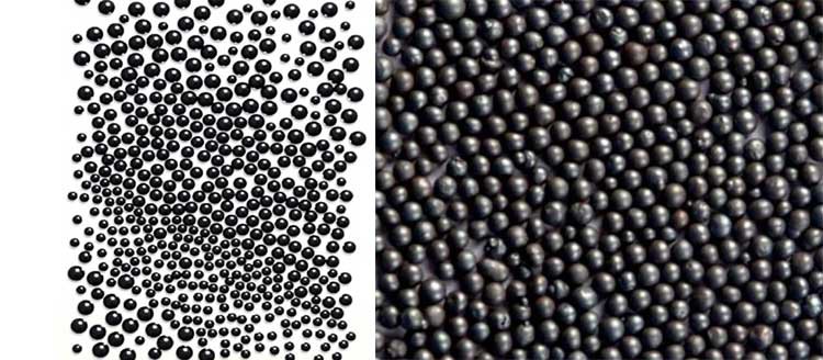 鋼丸廣泛用于鋼鐵工件涂裝前的去氧化皮和除銹處理,在這種情況中經(jīng)常使用離心拋丸設(shè)備。圓球形狀和較小的硬度使鋼丸不會對設(shè)備產(chǎn)生較大磨損。